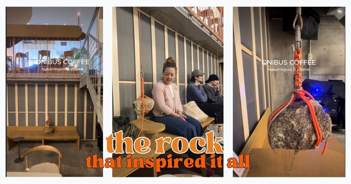 The second inspiration: an unexpected cafe in Meguro that was both strange and kind of wonderful. Onibus Coffee has the hybrid energy of an architecture studio, coworking space, and cafe all at once. Once you enter, there's a giant stone slab that leaves you unsure whether to stand around it, beside it, or just wait outside until the barista summons you. A tad confusing.