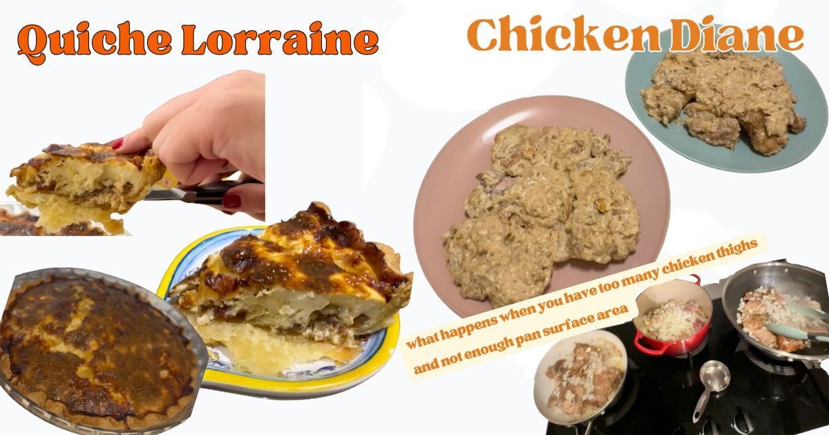 The original dish was supposed to be Steak Diane, but alas, we didn't have steak. We pivoted to a creamy, mustardy Chicken Diane (thanks, Ina). The sauce back then was rich and savory, often featuring sautéed mushrooms, Dijon mustard, and parsley.